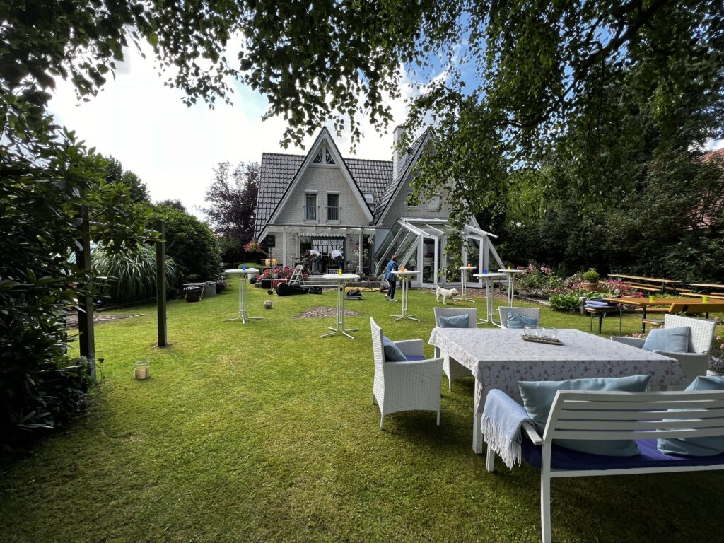 Ein sensationelles Ambiente, ein Haus direkt am See, eine Terrasse mit idealen Bühnenmaßen, ein Kühlwagen mit Getränken und ein reichhaltiges Buffet – der perfekte Sommerabend. Der Mann am Grill versorgte zusätzlich viele Freunde, Bekannte, Nachbarn und die Band! Die Stimmung bei den Gästen war hervorragend und das motivierte uns ungemein. Wir hatten einen tollen Abend und werden uns gerne daran zurück erinnern.