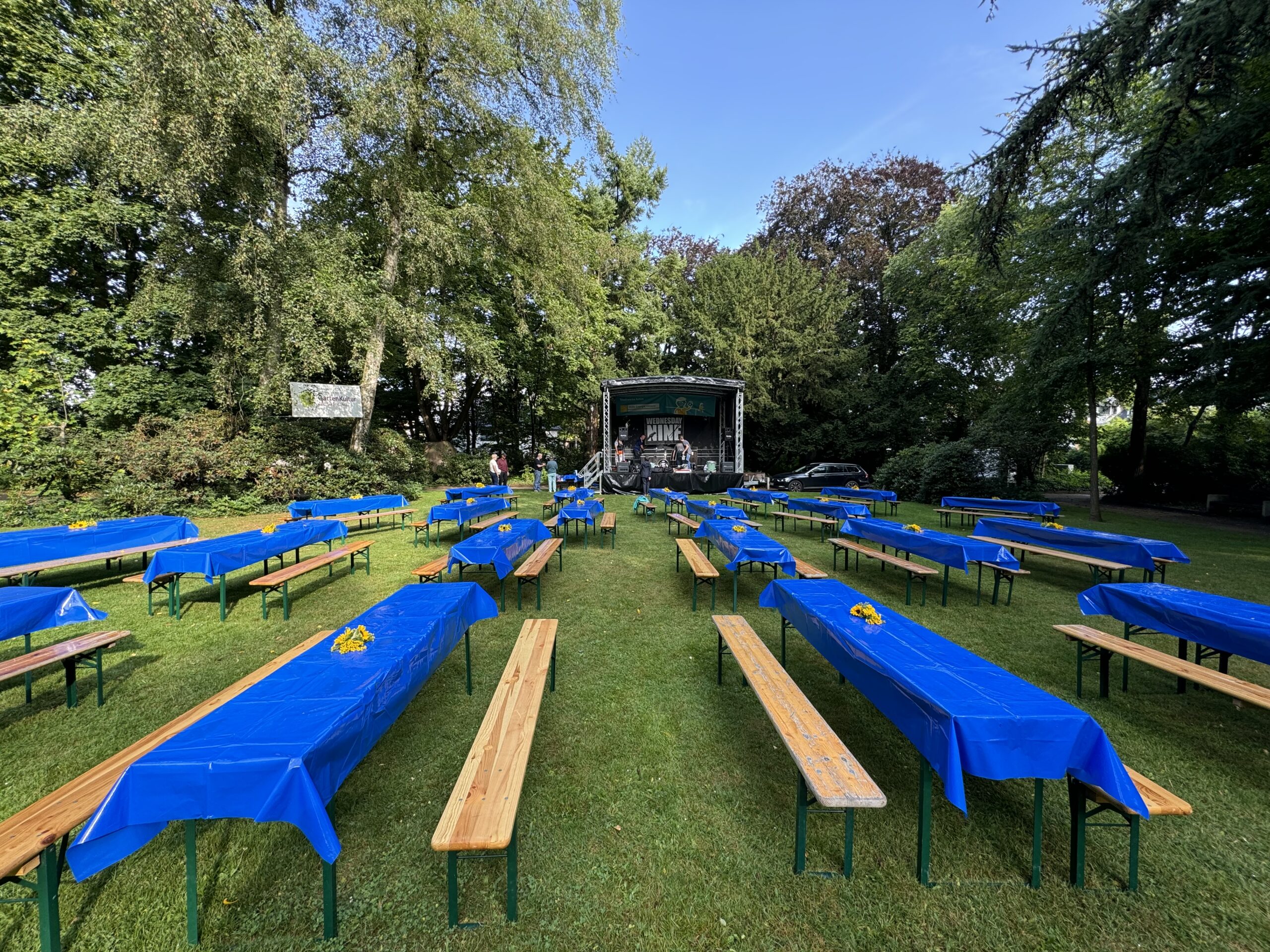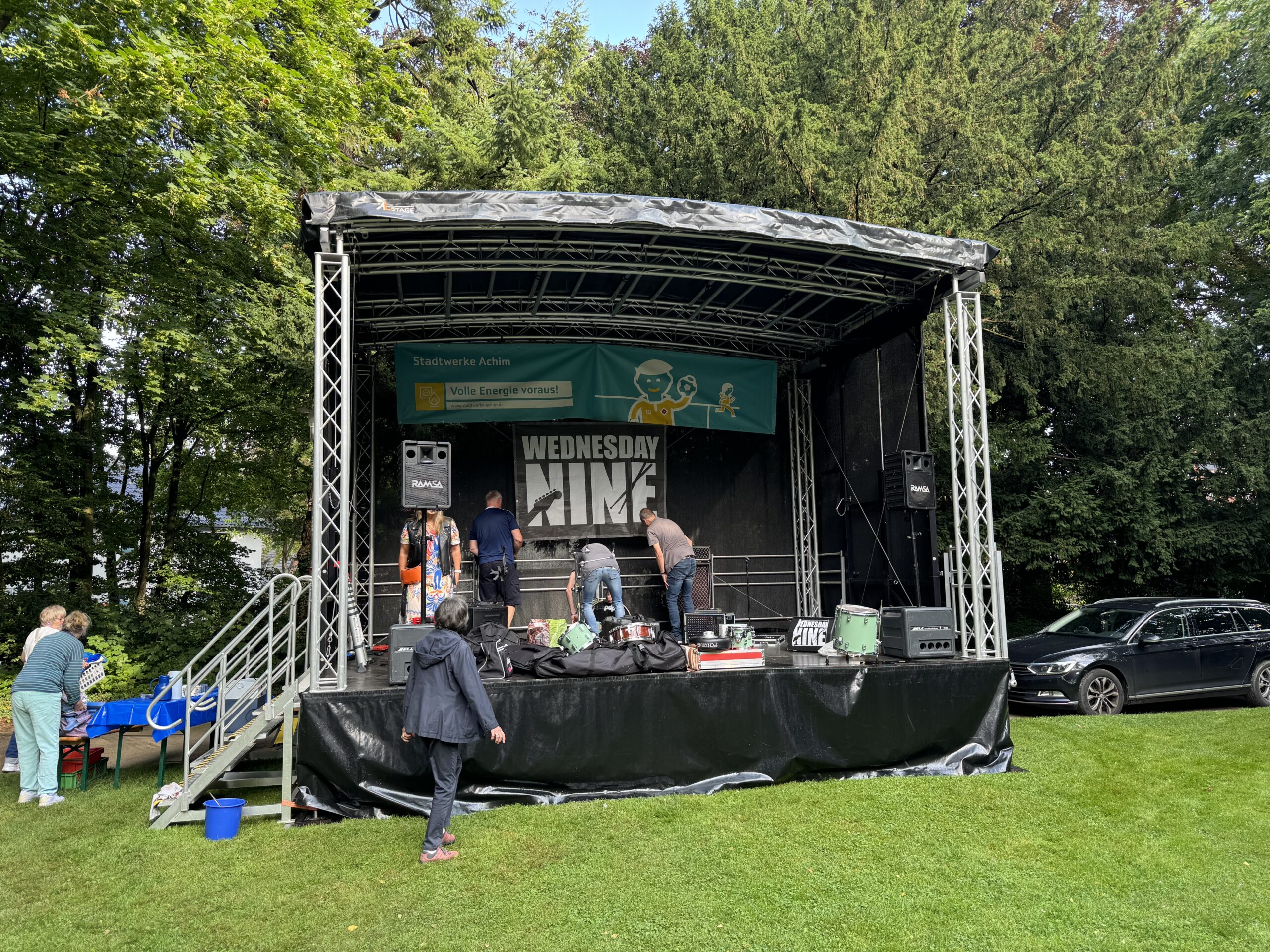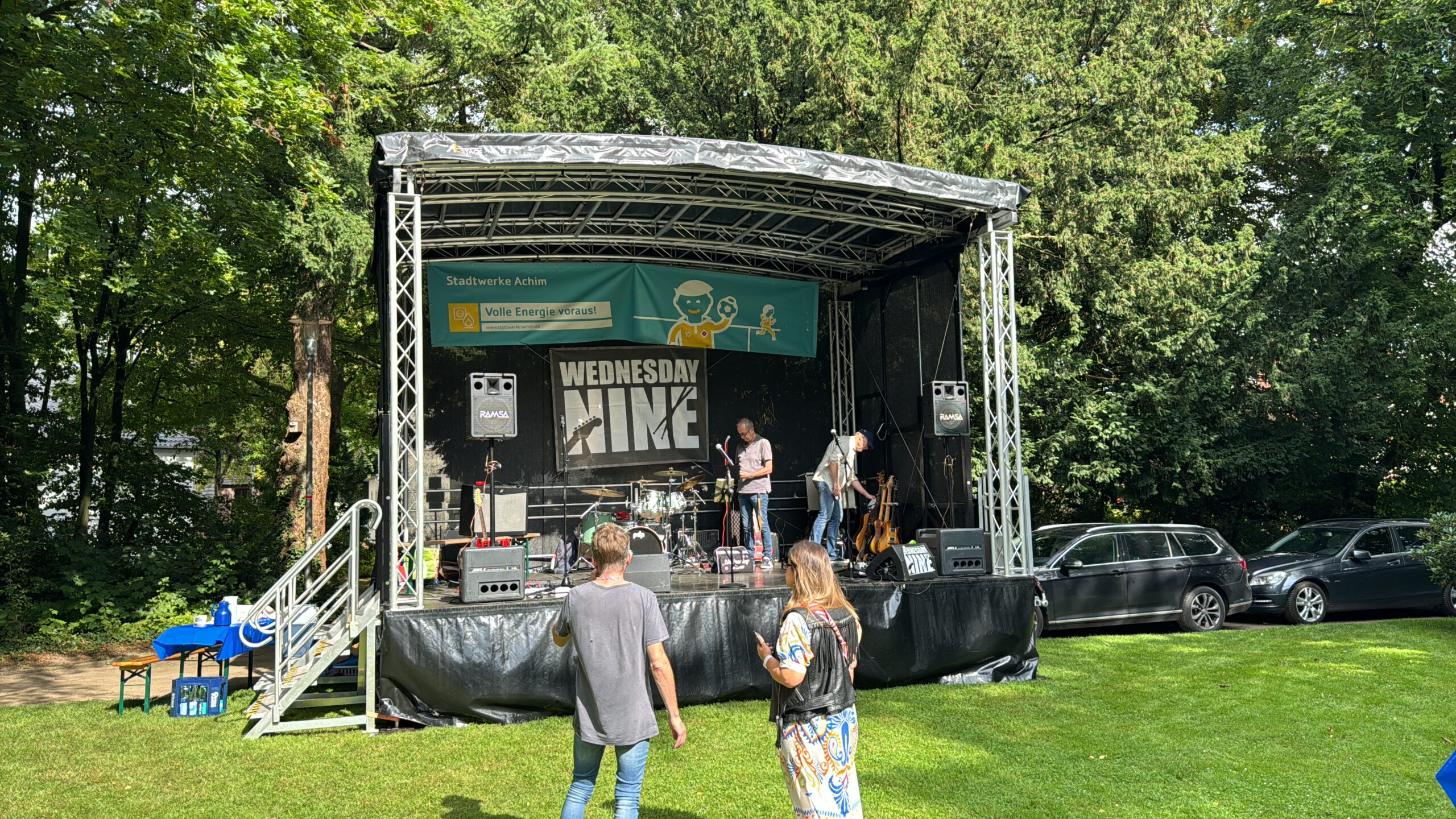 Anfang August – normalerweise bestes Sommerwetter. Die Wetterprognose war nur so la la, aber wir freuten uns zum ersten Mal in der Bandgeschichte in Achim zu spielen. Das Ambiente war wirklich besonders im Achimer Rathauspark. Grund genug auch für Gisela Enders vom Achimer Kurier der Veranstaltung einen Besuch abzustatten. Hier ist der Artikel / Alternatives Bild