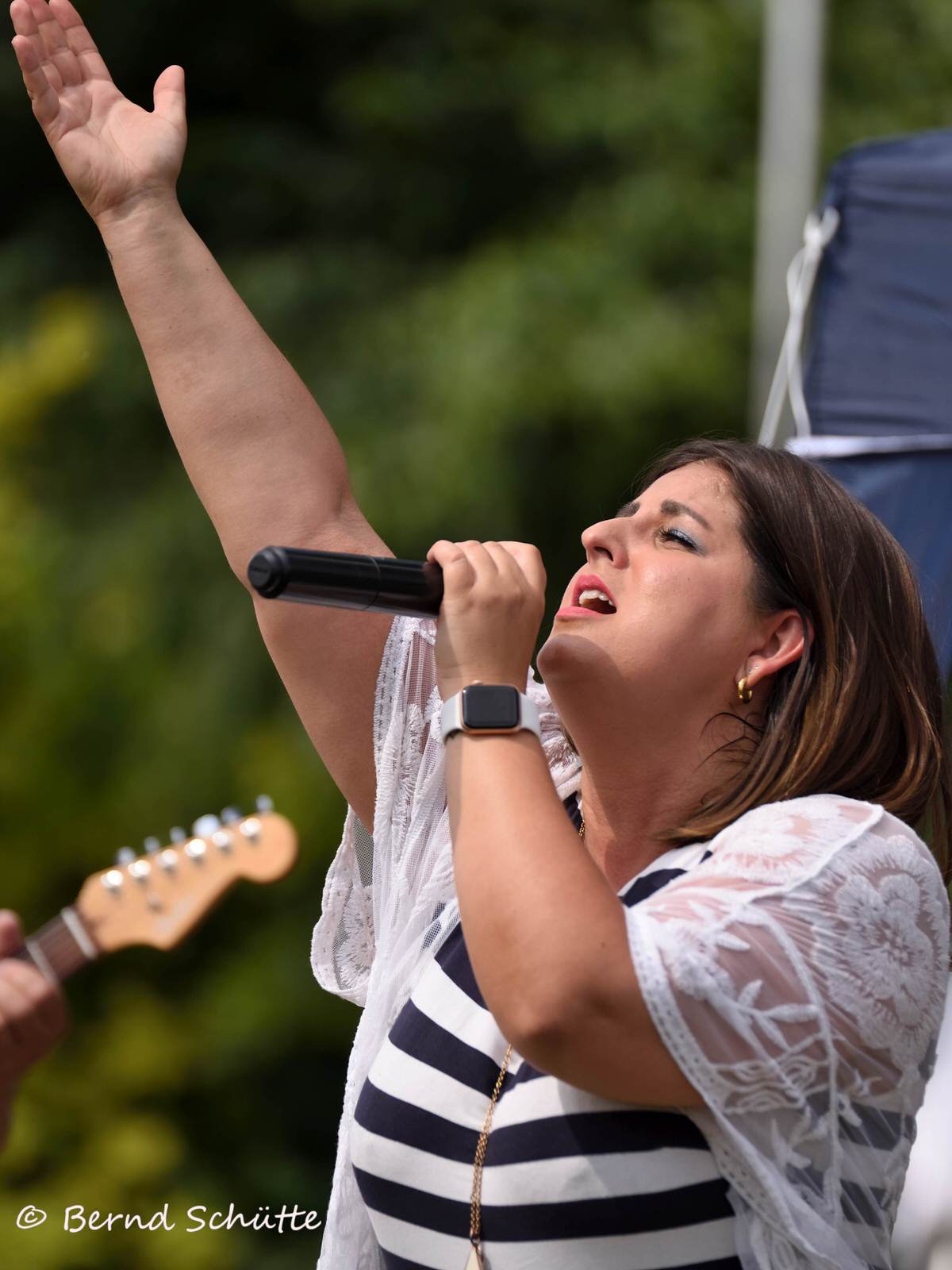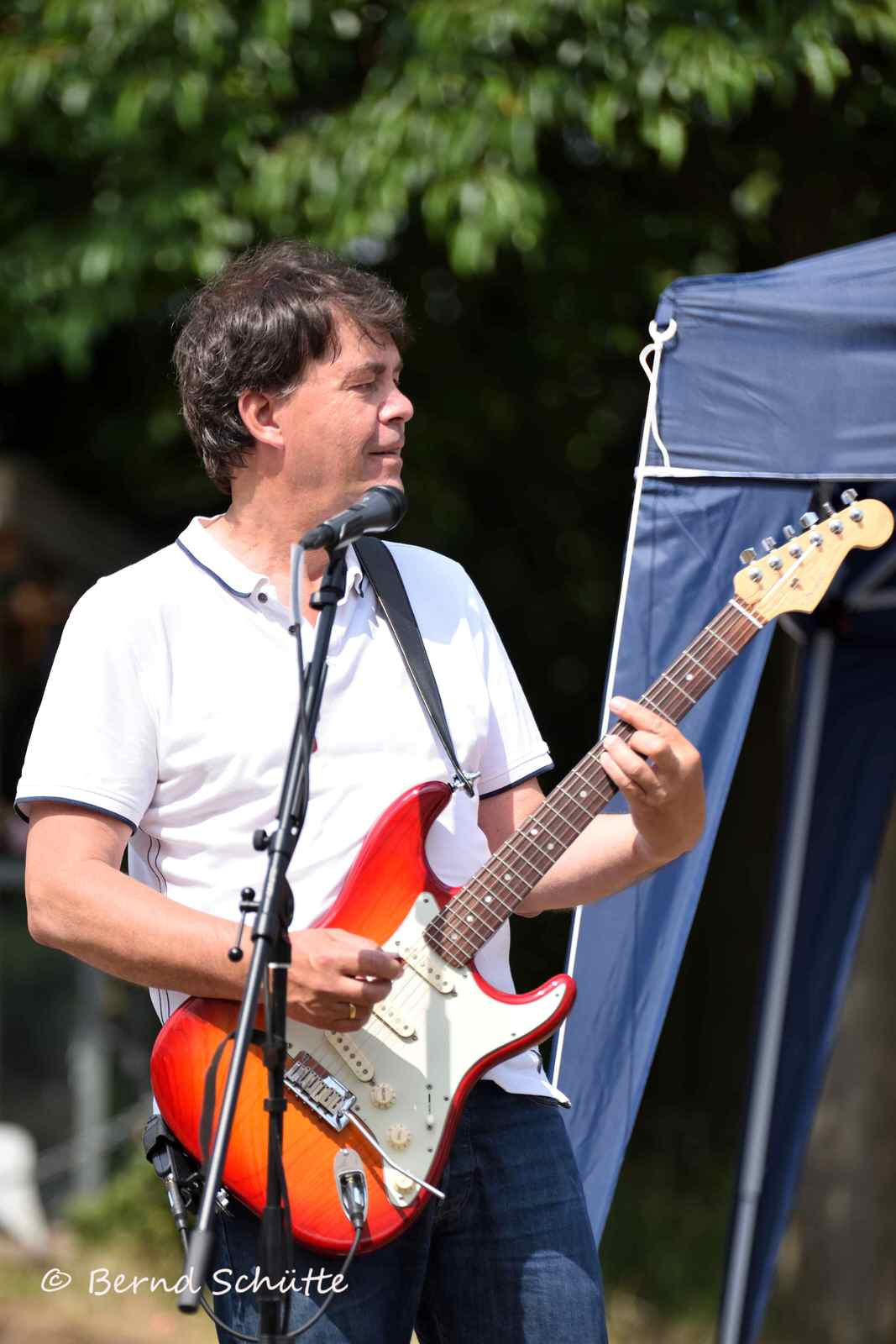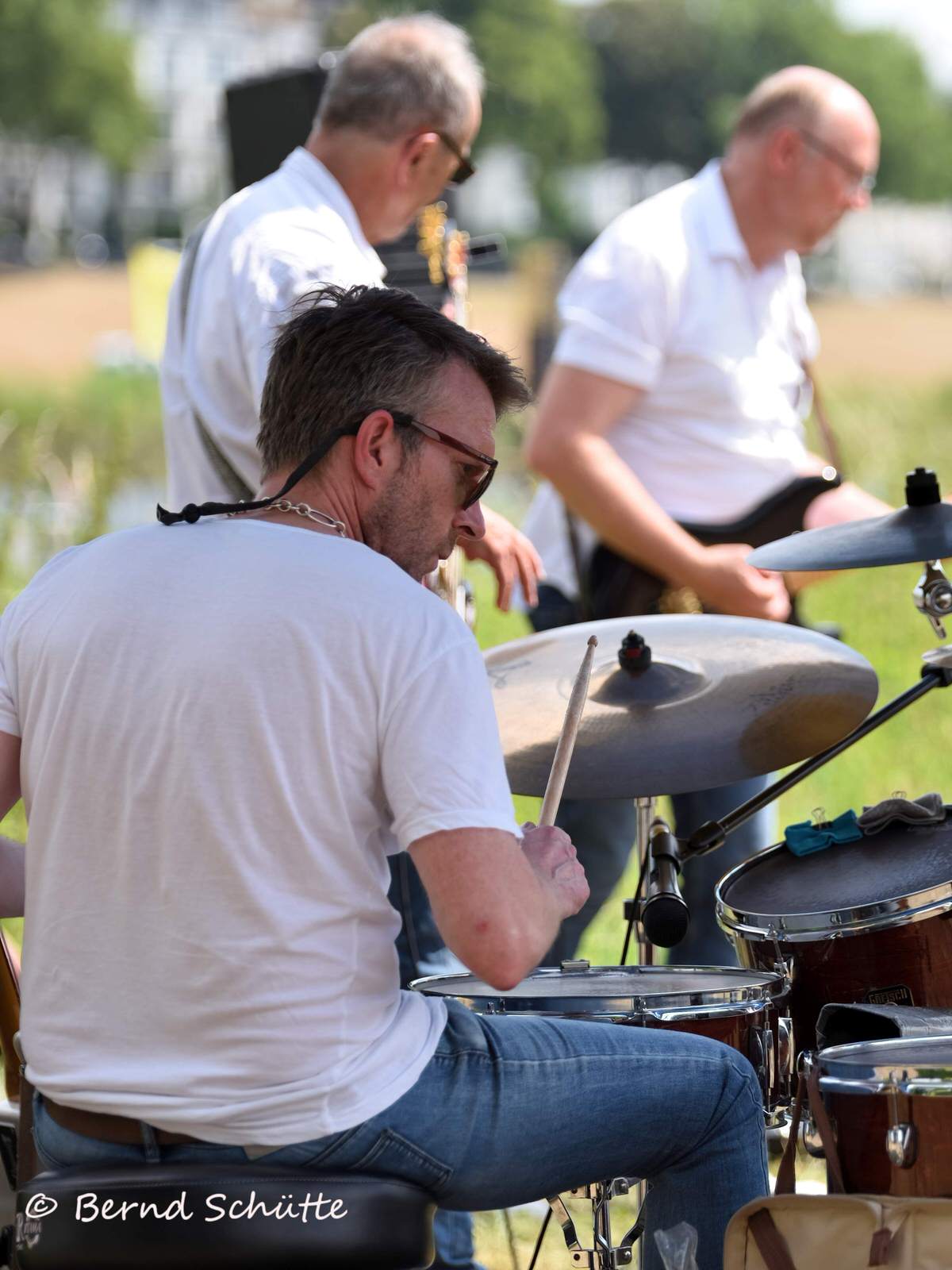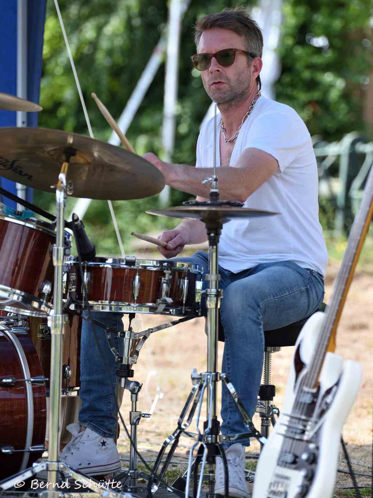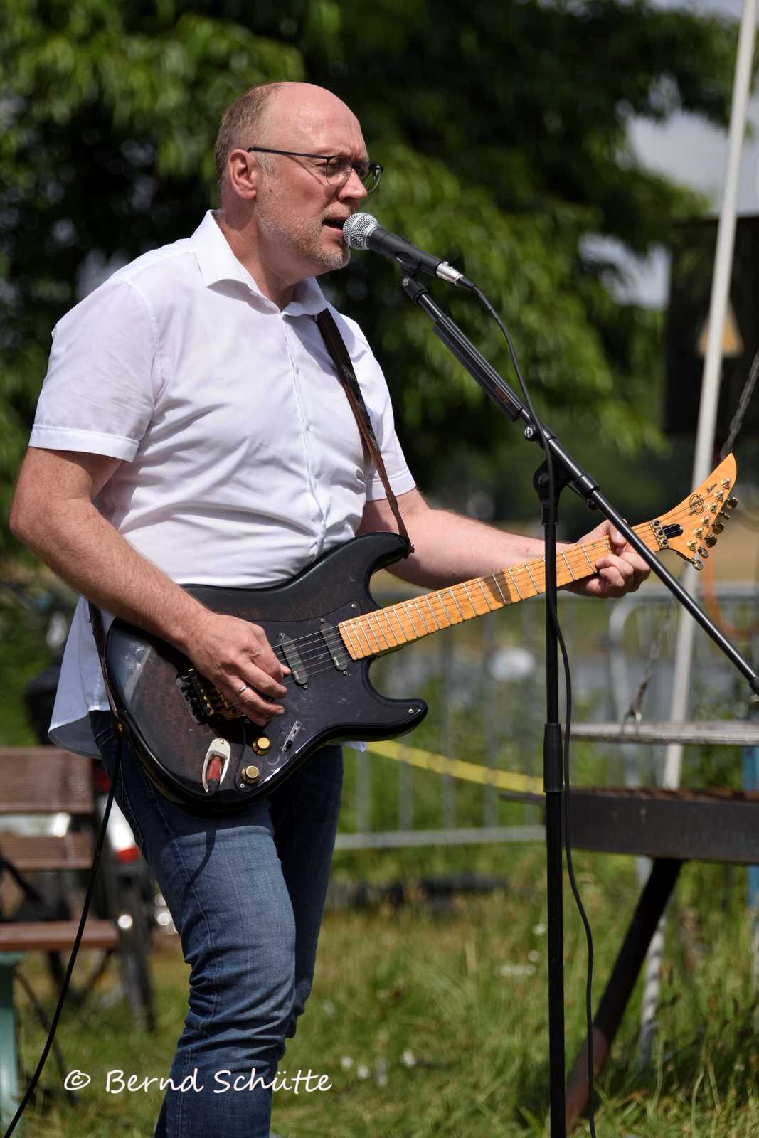 Boah war das heiß. Wir spielten erstmalig im SVB Marina Club direkt an der Weser und tatsächlich war es der bis dahin heißeste Tag des Jahres. Die Sonne brannte und natürlich hatte niemand an Sonnenschutz gedacht. Eigentlich sind wir auf alles gut vorbereitet (Pflaster, Kopfschmerztabletten, Mückenschutz etc. sind immer dabei), aber wer rechnet in Norddeutschland mit solchem Wetter ????? Wir spielten direkt an der Weser in der Sommerhitze, aber der Fluss brachte keinerlei Abkühlung. Dabei heißt unsere Musik doch schon mehr als genug ein …